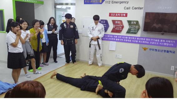 특히, 지난 9월 14일부터 25일간에 걸쳐 송정여자중학교 1학년 6개반 전교생을 대상으로 실시한 체험프로그램에서 위험에 처했을 때 대처할 수 있는 호신술 수업 진행으로 학생들에게 자신감을 심어주었으며, 재능기부로 참여한 투혼 길라잡이체육관(관장 서무현)시범단의 호신술 시연이 펼쳐지면서 학생들에게 뜨거운 박수를 받았다.