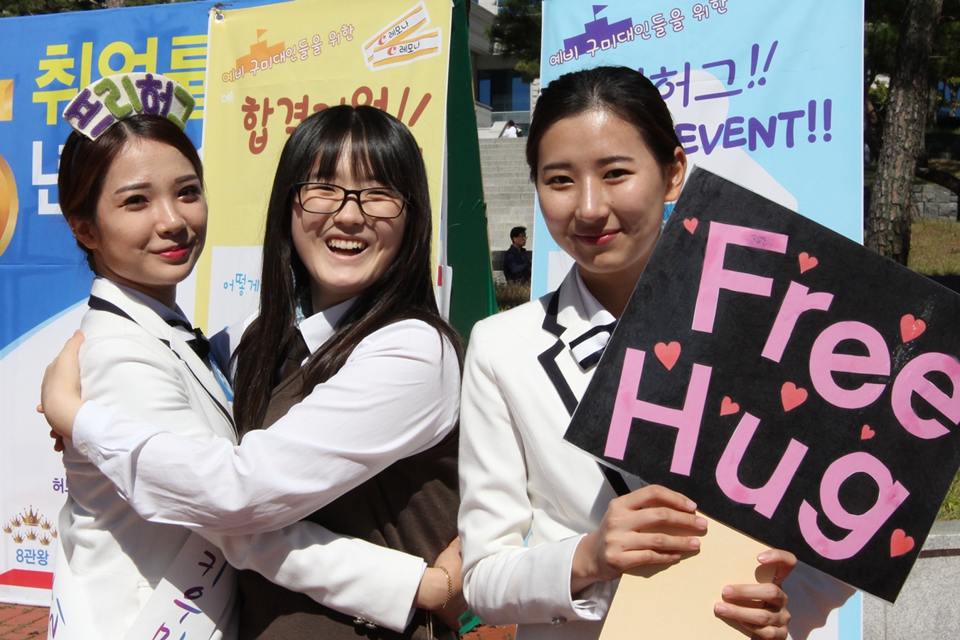 구미대학교(총장 정창주) 홍보대사 ‘키우미’ 학생들이 2일 수시1차 면접에 참가한 입시생들의 합격을 응원하는 프리허그 행사를 가져 눈길을 끌었다.