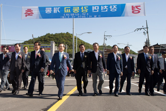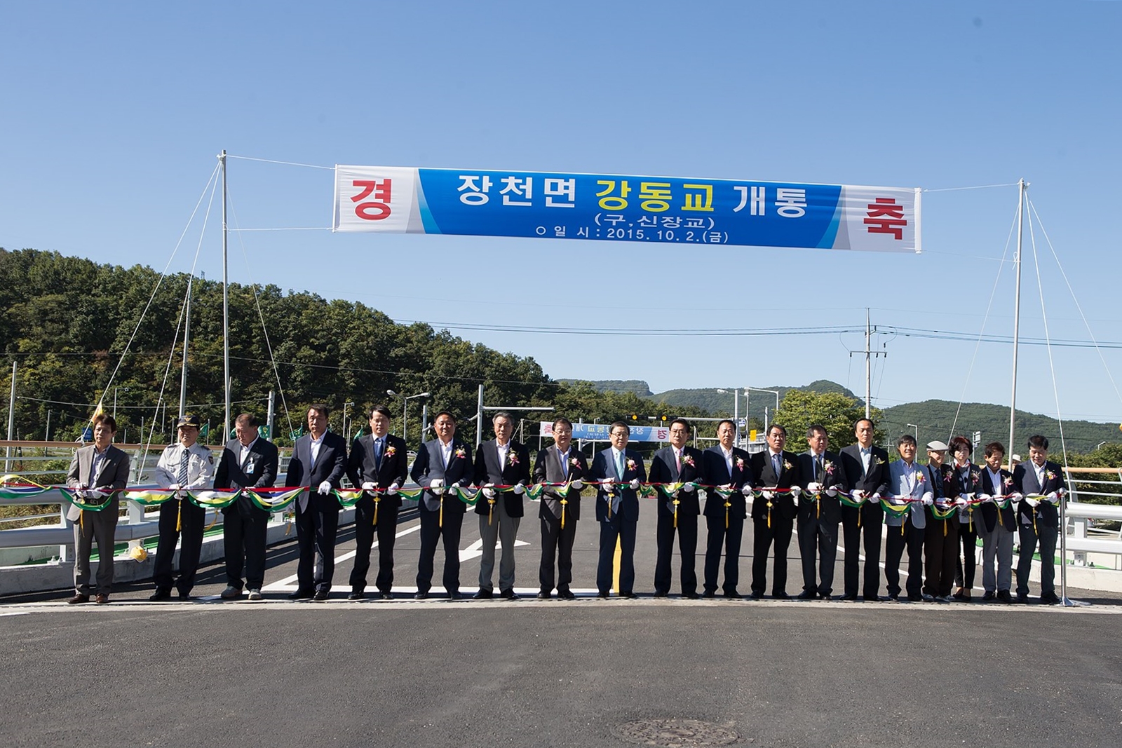 구미시(시장 남유진)는 노후화와 교량폭 협소로 불편을 겪어왔던 장천면 신장교 개량 공사를 마치고 2015년 10월 2일 준공식을 개최했다.