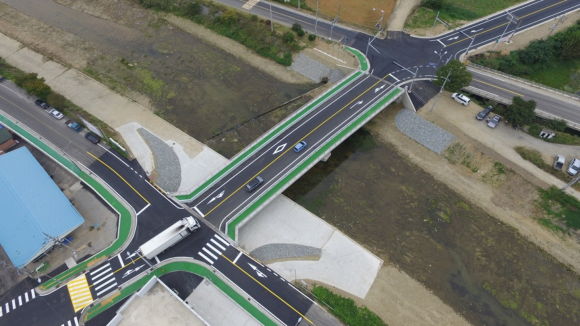 또, 국도25호선 신장교차로와 장천면 소재지, 학교통학로 및 장천 시장 이용에 편리하도록 접속도로 선형개량 및 교통신호등을 추가설치 했다.