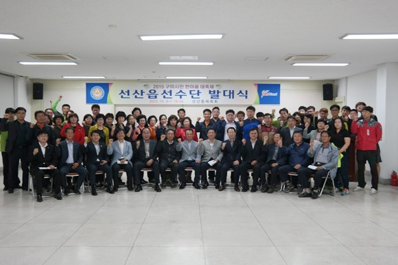 선산읍 체육회(회장 서형동)는 10월 8일 선산읍사무소 2층 회의실에서 2015 구미시민 한마음 대축제 준비상황보고회 및 참가 선수단 발대식을 가졌다.