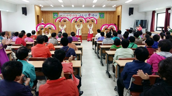 이날 행사에는 창, 민요에 이어 전통무용 등을 선보였으며, 아름다운세상 연구원 이기애 원장으로부터 ‘웃음치료 및 건강교육’ 특강이 이어졌다.