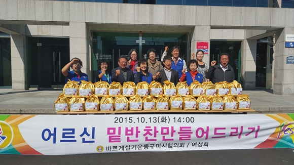 바르게살기운동구미시여성회(회장 강춘화)는 10월 13일 선산읍에서 각 읍·면·동 회원 30여명이 참여한 가운데 자매 결연 독거노인 54가구에 사랑의 밑반찬을 직접 전달했다.