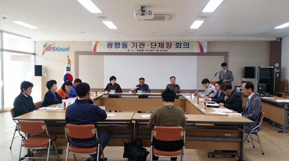 광평동(동장 이관응)은 10월 15일 동사무소 2층 회의실에서 관내 기관단체장 17명이 참석한 가운데 다가오는 ‘구미시민 한마음 대축제’ 행사 준비 등 당면 현안에 대한 대화의 시간을 가졌다.