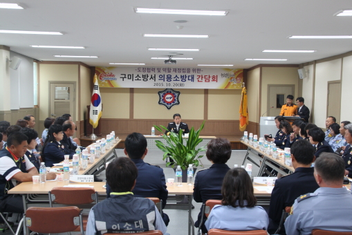 구미소방서(서장 이태형)는 20일 구미소방서 대회의실에서 각 의용소방대장 등 대원 50여명이 참석한 가운데 신도청시대 경북의 새역사를 열어갈 도정협력 및 의용소방대 역할 재정립을 위한 간담회를 개최했다.