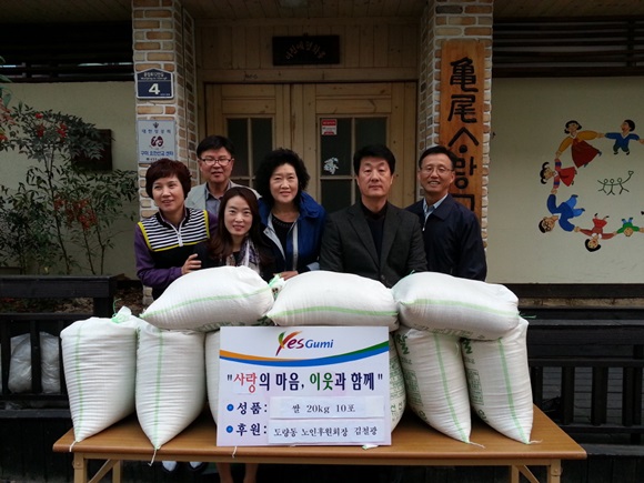 도량동(동장 최현도)에서는 10월 20일 노인후원회(회장 김철광)에서 햅쌀 20kg 10포를 어르신들을 위해 사용해 달라며 관내 구미시니어클럽(관장 이원재)에 기탁해 훈훈한 미담이 되고 있다.