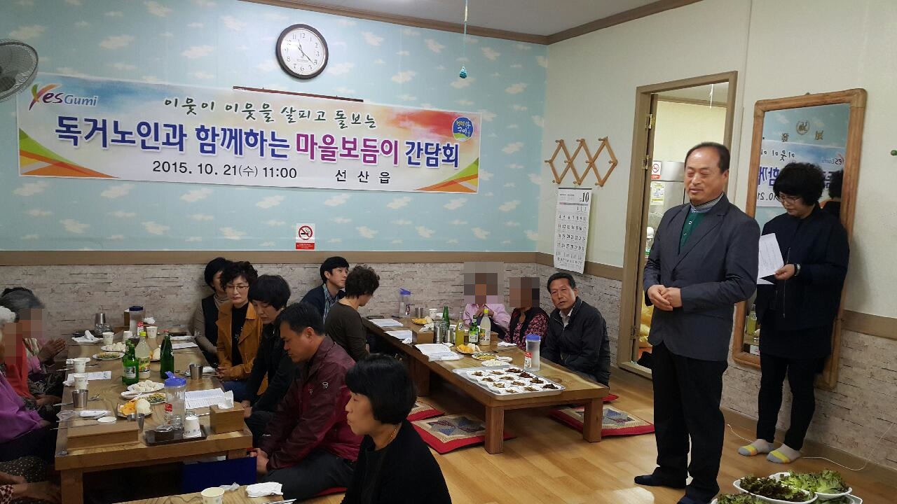 선산읍 마을보듬이 위원회(위원장 김헌기)는 10월 21일 선산읍 관내 식당에서 독거 어르신 13여 명을 모시고 정성스레 마련한 점심식사를 대접하는 자리를 마련하고, 추가 선정된 마을보듬이 위원 12명에 대한 위촉식을 가졌다.