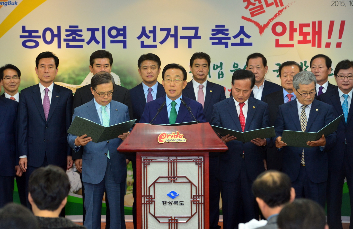 경상북도지사와 도내 시장군수, 도의원, 시군의원이 한목소리로 농어촌 국회의원 선거구 축소 반대에 나섰다.