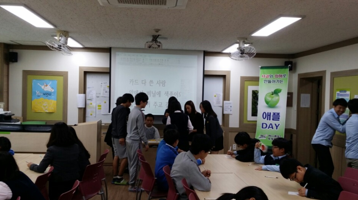평소 친구에게 직접 전하기 어려웠던 미안함과 고마움의 마음을 카드에 담아 사과와 함께 전하는 이번 행사는 많은 학생들의 참여로 더욱 빛이 났다.