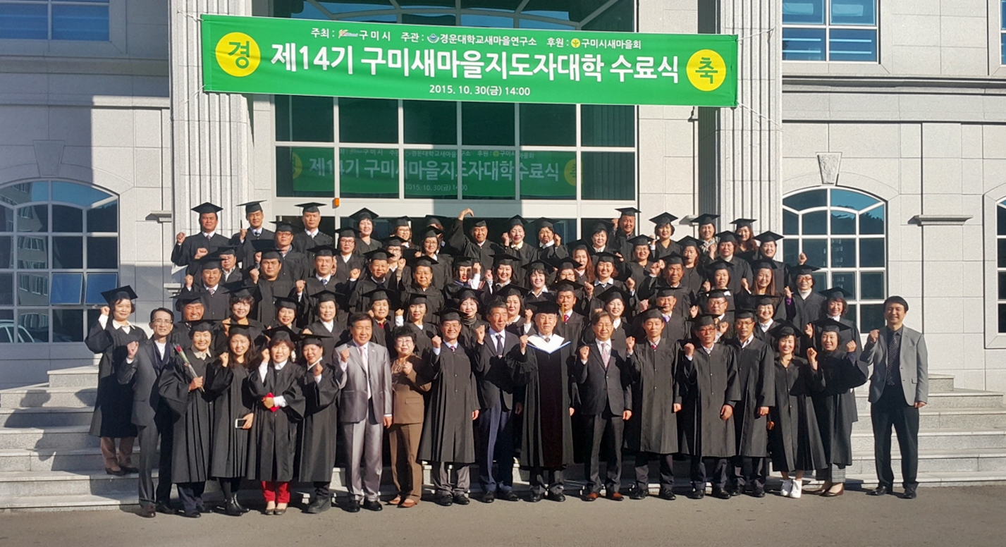 구미시가 주최하고 경운대학교 새마을연구소가 주관하는 ‘제14기 구미새마을지도자대학’ 수료식이 10월30일 경운대학교 11호관 대강당에서 내·귀빈 및 수료생 등 120여 명이 참석한 가운데 개최됐다.