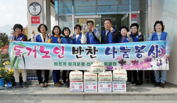 신평2동(동장 김종원) 바르게살기위원회(위원장 이석전) 회원 10여 명은 11월 2일 이웃사랑 하는 마음을 담은 김치, 장조림, 멸치 등 밑반찬을 직접 만들어 어려운 가정(5세대)에 전달했다.