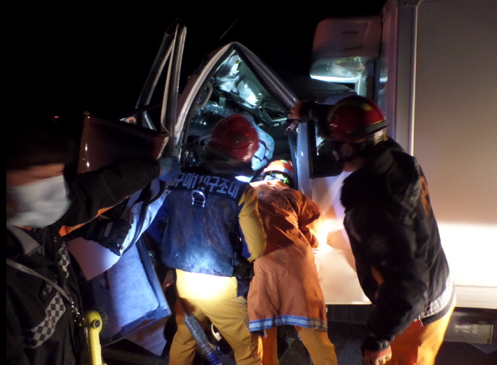 이날 구조된 박모씨(25세, 남)는 18시 00분경 해평면 인근 25번 국도 상행선 방향으로 1톤 탑차를 타고 주행 중 앞서가던 트랙터를 추돌했다.