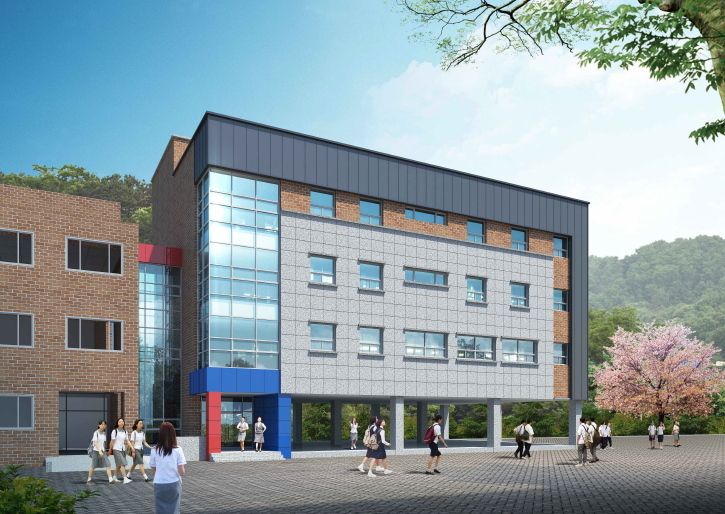 이번 증축 규모는 연면적 982㎡ 지상 4층의 철근콘크리트/철골조 구조로, 200석규모의 시청각실과 특별교실 6실 구성되어 있으며, 2016년 9월경 준공 예정이다.