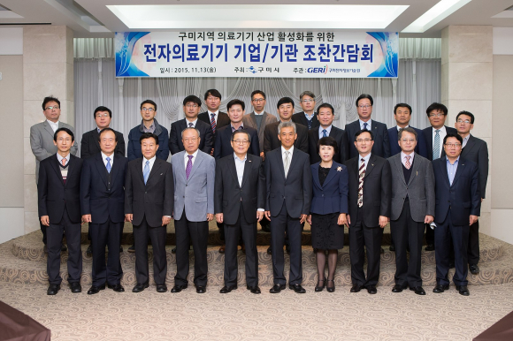 구미시(시장 남유진)는 구미전자정보기술원(원장 차종범)과 함께 11월 13일 호텔금오산에서 남유진 구미시장, 류한규 구미상공회의소 회장, 지상근 구미중소기업협의회 회장, 곽호상 금오공과대학교 산학협력단장, 김은수 경운대학교 기획처장, 정광욱 맨앤텔 대표, 김찬한 세아메카닉스 대표 등 산학연관 관계자 30여명이 참석한 가운데 조찬간담회를 가졌다.
