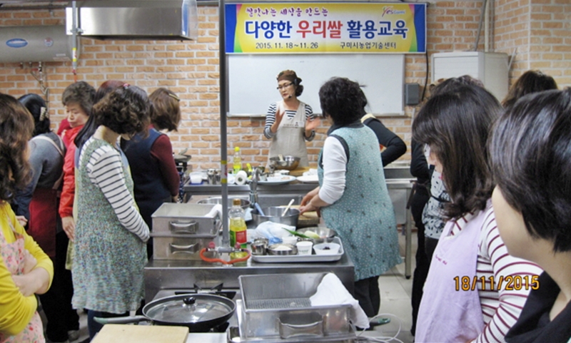 구미시농업기술센터(소장이해권)는 우리쌀 소비촉진을 위해 11월 18일 ~ 26일까지 총 4회에 걸쳐 구미시민 120명을 대상으로 다양한 우리쌀 활용교육을 실시한다.