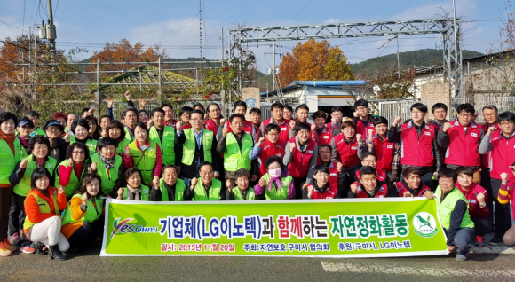 구미시자연보호협의회(회장 천명석)와 LG이노텍(사장 이웅범)은 11월 20일 회원 및 공무원 100여 명이 참석한 가운데 낙동강 수변공원에서 기업체와 함께 하는 자연보호운동 캠페인을 전개했다. 이날 행사는 2014년 11월 25일 LG이노텍과 MOU를 체결하고 두 번째로 실시하는 캠페인으로 봉사단이 준비한 유용한 미생물로 만든 EM흙공 2,000개를 낙동강에 투척하여 낙동강 수질개선 및 오염을 예방하고 하천변 자연정화활동을 전개했다.