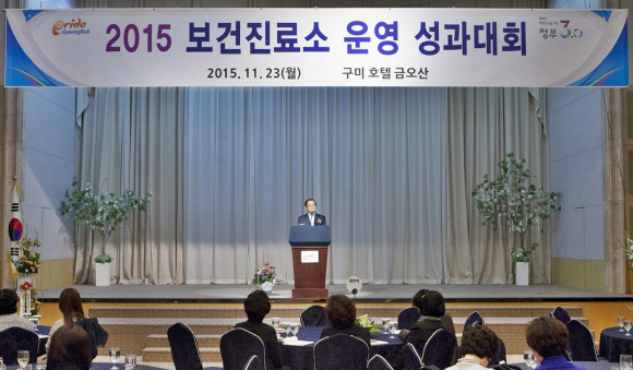 구미시(시장 남유진)는 11월 23일 호텔금오산에서 경북 시·군 보건진료전담공무원등 350여 명이 참석한 가운데 경상북도가 주최한 ‘2015년 보건진료소 운영 성과대회’에서 선산보건소가 우수 보건소 수상의 영예를 안았다.