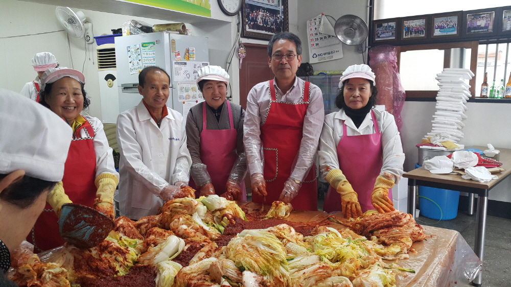 회원들이 직접 담근 김치 45가구에 전달