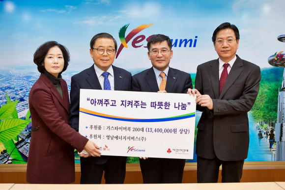 영남에너지서비스(대표 김찬호)는 11월 27일 시청 3층 중회의실에서 구미시에 가스 타이머콕 200대를 기탁했다.