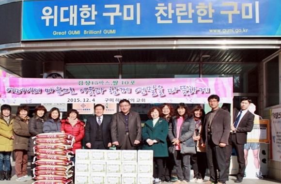 광평동(동장 이관응) 하나님의 교회(목사 조준형)에서 12월 4일 신도들과 함께 연말 이웃돕기 성품을 기탁했다.
