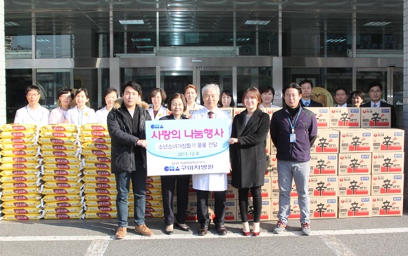 차의과학대학교 부속 구미차병원(병원장 이승호)은 12월 8일 지역의 소년·소녀가장을 돕기위해 350만 원 상당의 물품을 지역주민센터 사회복지사를 통해 전달했다.