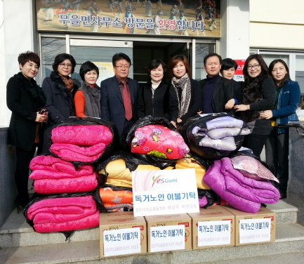 경운대학교 최고위관리자과정 총동창회 여성국(국장 박정숙)은 12월 9일 무을면(면장 손정애) 독거노인 등 동절기 어려운 이웃에게 도움이 되고 싶다며 이불 12채를 전달했다.