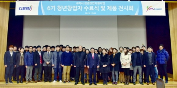 구미시(시장 남유진)는 12월 9일 구미전자정보기술원에서 차종범 구미전자정보기술원장, 황종철 구미시 경제통상국장, 수료생과 관계자 60여 명이 참석한 가운데 제6기 구미시 청년창업지원사업 수료식 및 제품전시회를 가졌다.