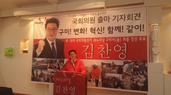 김찬영 前 새누리당 보수혁신위원장 청년특보가 12월 14일 구미시청 열린나래에서 제 20대 국회의원 선거 구미 을 지역 출마선언 기자회견을 가졌다.