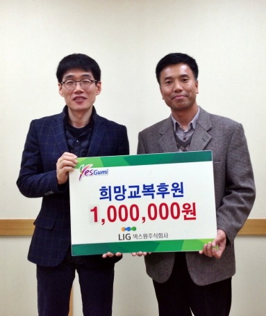 LIG 넥스원(주) 구미사업장에서 12월 14일 관내 저소득층 자녀 지원을 위한 교복후원금 100만원을 구미 보건소(소장 구건회)에 전달했다.