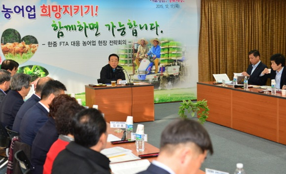 경상북도는 한·중 FTA 발효가 초읽기에 들어감에 따라 12월 17일 영천시 농업기술센터에서 김관용 경상북도지사의 주재로 한·중 FTA 대응 ‘경북농어업 희망 지키기 10대 특별 대책’을 발표했다.