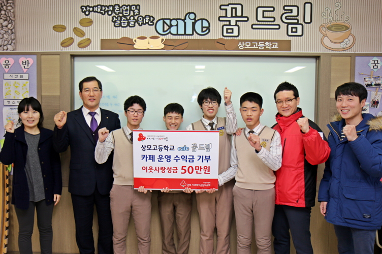 구미 상모고등학교(교장 김장섭) ‘cafe 꿈드림’은 지난 12월 17일 운영수익금 50만원을 경북사회복지공동모금회(회장 신현수)에 기부했다.