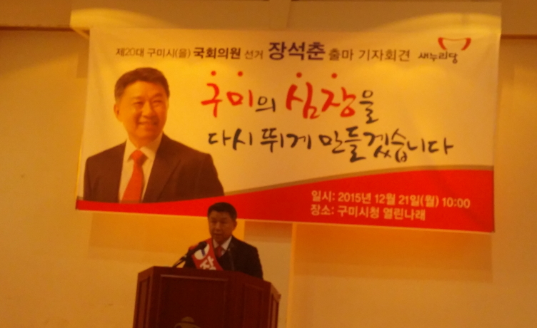 대통령 고용노동 특별보좌관 출신인 장석춘 예비후보가 12월 21일 구미시청 열린나래에서 구미 을 총선 출마 기자회견을 가졌다.