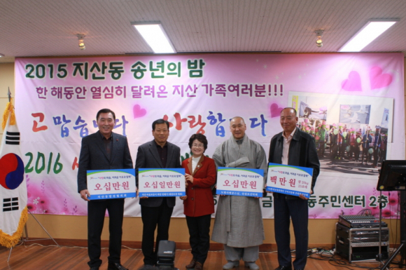 지산동 발전협의회 등은 따뜻한 온정이 담긴 성금과 성품전달