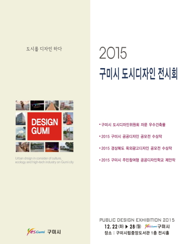 구미시(시장 남유진)는 12월 22일 구미시립중앙도서관 1층 전시홀에서 ‘2015 구미시 도시디자인 전시회’를 개최한다.