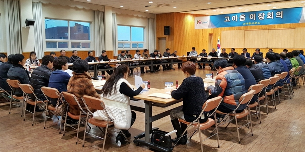 고아읍(읍장 김회식)은 12월 22일 읍사무소 3층 강당에서 김태환 국회의원을 비롯한 도의원, 시의원, 이장 및 기관단체장 등 50여 명이 참석한 가운데 12월 이장회의를 개최했다.