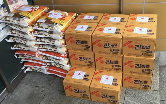 송정동주민센터에 쌀 380kg, 라면 20박스 기탁
