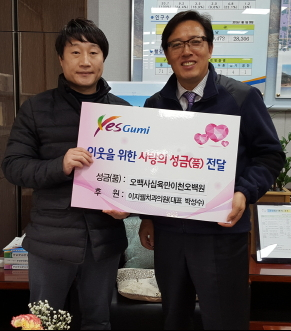 이지웰치과의원(대표 박성수)은 12월 24일 인동동(동장 이창형)에 이웃돕기 성금 5,462,500원을 전달하는 훈훈한 나눔을 실천했다.