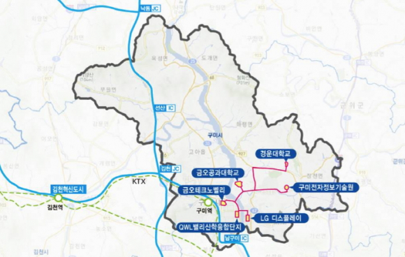 이날 발표되는 특구 추진지역은 구미 금오테크노벨리, LG디스플레이, 구미전자정보기술원, 금오공과대학교, 경운대학교 부지 등 면적은 1.95㎢이다
