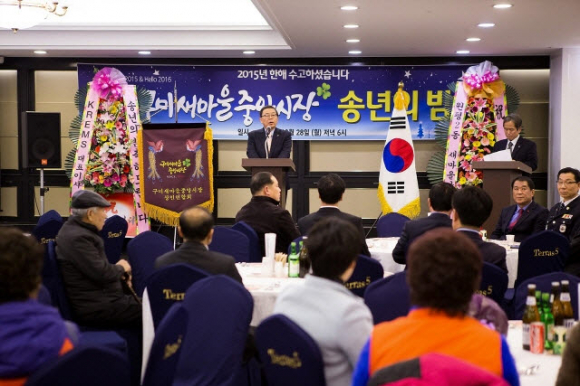 구미시(시장 남유진)는 12월 28일 관내식당에서 구미새마을중앙시장 상인연합회(회장 장용웅) 주관으로 남유진 구미시장, 김익수 시의회 의장, 도·시의원을 비롯한 지역 기관·단체장 및 상인 등 300여명이 참석한 가운데 ‘2015년 구미새마을중앙시장 송년의 밤’ 행사를 가졌다.