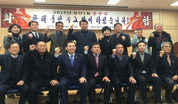 황종영동장은 인사말을 통해 “주민화합과 발전을 위해 1년 동안 소통과 배려로 하나가 된 각 기관단체와 주민들에게 감사의 인사를 드리며, 2016년에는 낙동강 체육공원과 어우러지는 공단속의 신개념 주거지역으로 발돋움하는 공단 태동기의 명성을 재현하는 ‘도약하는 공단1동’을 함께 만들어 갈 것”을 당부했다. |