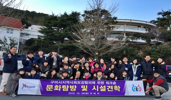 구미시(시장 남유진)는 12월 29일 구미시지역사회보장협의체 (공동위원장 김광우) 위원 40여 명이 참석해 경남 거제시에 소재한 애광원 등 4개 시설견학 및 문화탐방을 통해 협의체 위원 역량강화 워크숍을 가졌다.