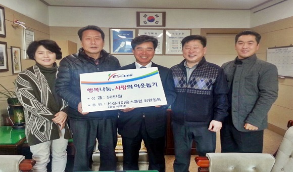 선산라이온스클럽(회장 박백상 등 회원 50여명)은 12월 30일 선산읍(동장 윤영술)에 관내 저소득층과 소외계층을 위한 이웃돕기 성금 50만원을 전달했다.
