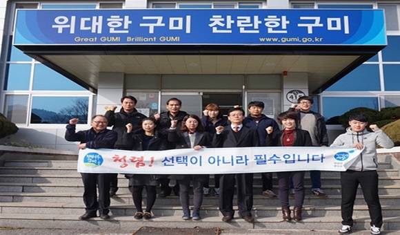 이날 전 직원은 공직사회의 부정부패를 척결하고 청렴한 공직풍토 조성을 위한 결의문을 낭독하며 ‘청렴으로 당당한 나, 우리 ,구미!’ 구호 아래 깨끗하고 신뢰받는 공직자가 되기를 다짐했다.