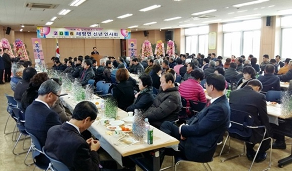 해평면(면장 양희규)은 1월 6일 해평면 복지회관에서 해평면 자연보호협의회(회장 이해조)와 구미문화원 해평분원(분원장 손천익) 주관으로 김태환 국회의원 및 도·시의원, 재경향우회장을 비롯한 관내 기관단체장과 면민 150여 명이 참석한 가운데 ‘2016년 해평면 신년인사회’를 개최했다.