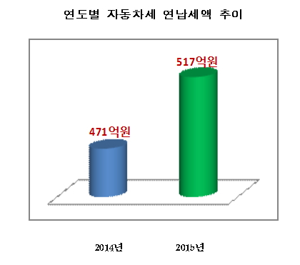 한편, 경북도는 지난해 총 126만대의 자동차에 대해 2,090억 원의 자동차세를 과세했으며, 이중 25%에 해당하는 23만대 517억 원을 연납하는 등 자동차세 연납이 매년 늘어나고 있는 것으로 알려졌다. |