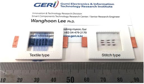 구미전자정보기술원(GERI, 원장 차종범)은 2015년 ‘구미시 핵심부품 소재기술개발사업’을 통해 신체부착형 웨어러블(wearable) 디바이스의 핵심 기술 중의 하나인 섬유형 온도센서 개발에 성공했다고 밝혔다.