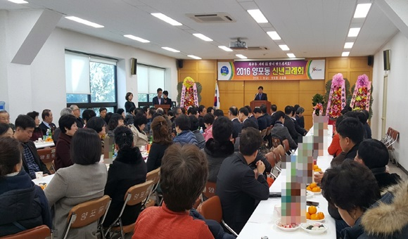 양포동(동장 박태병)은 1월 8일 주민센터 2층 회의실에서 도·시의원, 기관단체장 및 주민 130여명이 참석해 ‘2016년 신년 교례회’를 개최했다.