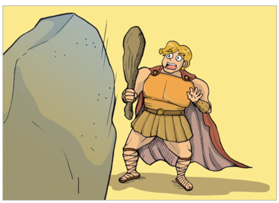 "어라? 이게 나를 놀리네?" 어느새 흥분한 헤라클레스는 다시 힘껏 발로 차버렸습니다. 그랬더니 이번에는 바위만큼 커져 버렸습니다.