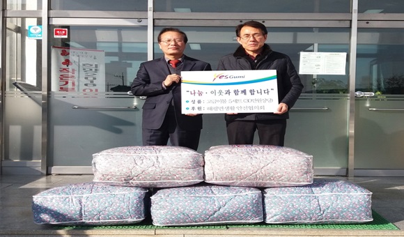 해평면 생활안전협의회(회장 조남근)는 1월 11일 해평면(면장 양희규)사무소에서 관내 저소득 가구를 위해 고급이불 5세트(30만원 상당)전달식을 가졌다.
