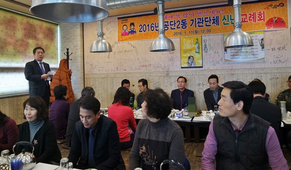 이날 행사는 공단2동 제일빌딩 대표 박용건 회장의 주관으로 각 유관 단체장과 자생 단체 간 새해 인사와 덕담을 나누며, 공단 2동 발전을 위해 서로 화합하고, 2016년 새해를 힘차게 출발하는 다짐의 시간이 되었다.
